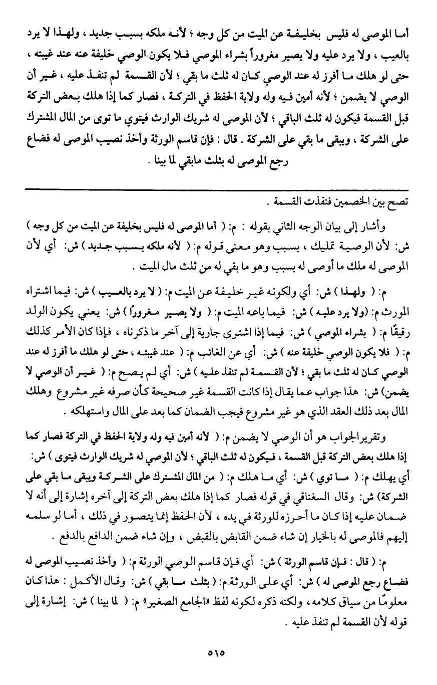 ـــــــــــــــــــــــــــــQتصح بين الخصمين فنفذت القسمة.