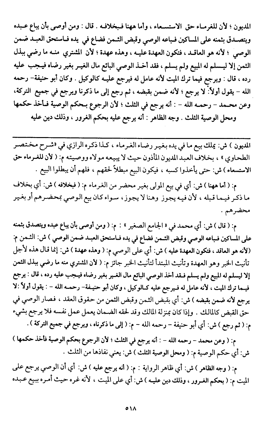 ـــــــــــــــــــــــــــــQالمديون) ش: يملك بيع ما في يده بغير رضاء الغرماء، كذا ذكره الرازي في " شرح مختصر الطحاوي "، بخلاف العبد المديون المأذون حيث لا يبيعه مولاه ووصيته م: (لأن للغرماء حق الاستسعاء) ش: حتى يأخذوا كسبه، فيكون البيع مبطلا لحقهم، فلهم أن يبطلوا البيع.