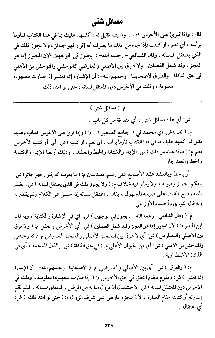 م: (مسائل شتى) ش: أي هذه مسائل شتى، أي متفرقة من كل باب.