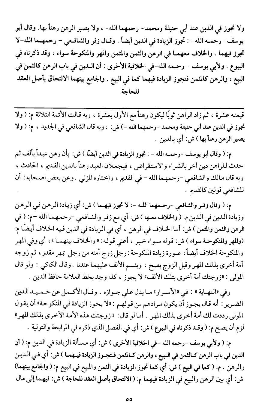 ـــــــــــــــــــــــــــــQقيمته عشرة، ثم زاد الراهن ثوبا ليكون رهنا مع الأول بعشرة، وبه قالت الأئمة الثلاثة م: (ولا تجوز في الدين عند أبي حنيفة ومحمد - رحمهما الله -) ش:، وبه قال الشافعي في الجديد، م: (ولا يصير الرهن رهنا بها) ش: أي بالدين.