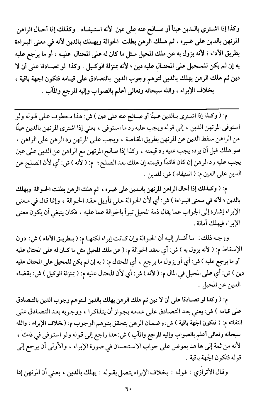 وكذا إذا اشترى بالدين عينا أو صالح عنه على عين لأنه استيفاء. وكذلك إذا أحال الراهن المرتهن بالدين على غيره، ثم هلك الرهن بطلت الحوالة ويهلك بالدين لأنه في معنى البراءة بطريق الأداء؛ لأنه يزول به عن ملك المحيل مثل ما كان له على المحتال عليه، أو ما يرجع عليه به إن لم يكن للمحيل على المحتال عليه دين؛ لأنه بمنزلة الوكيل. وكذا لو تصادقا على أن لا دين ثم هلك الرهن يهلك بالدين لتوهم وجوب الدين بالتصادق على قيامه فتكون الجهة باقية، بخلاف الإبراء، والله سبحانه وتعالى أعلم بالصواب وإليه المرجع والمآب.
