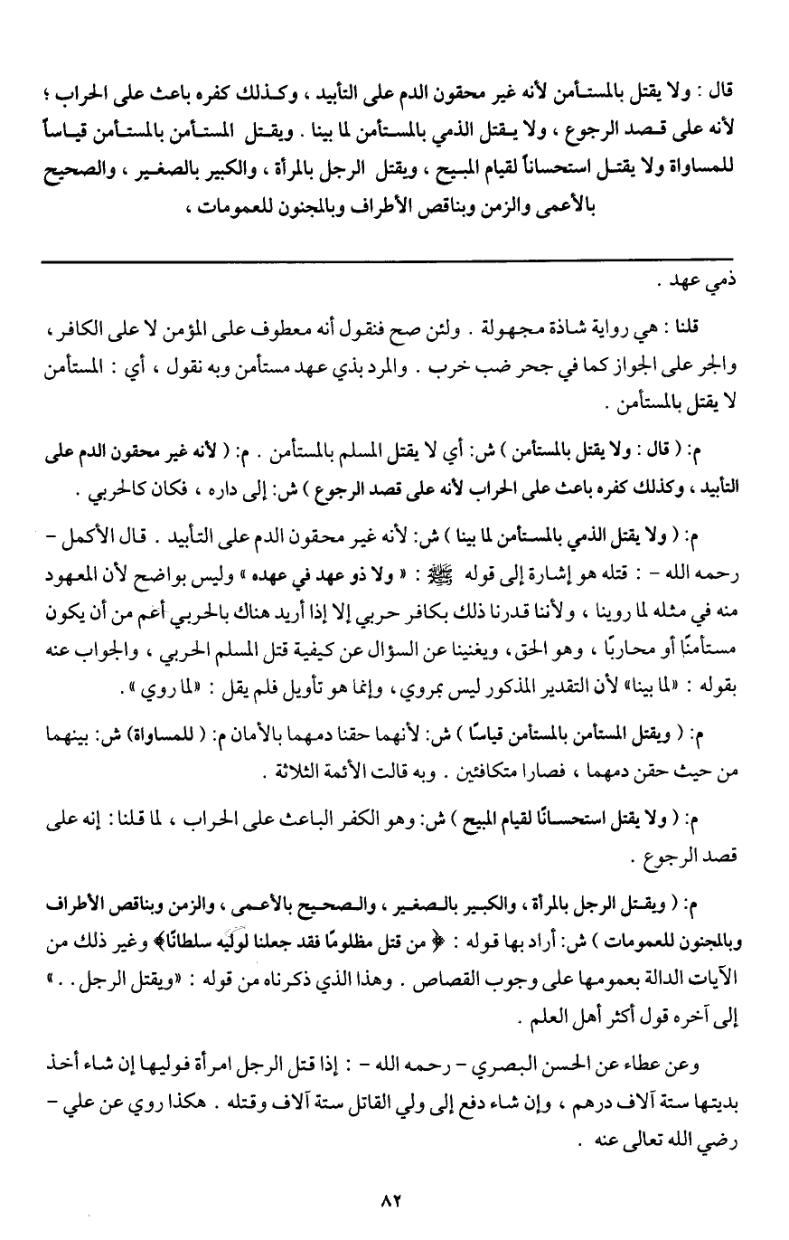م: (ولا يقتل استحسانا لقيام المبيح) ش: وهو الكفر الباعث على الحراب، لما قلنا: إنه على قصد الرجوع.
