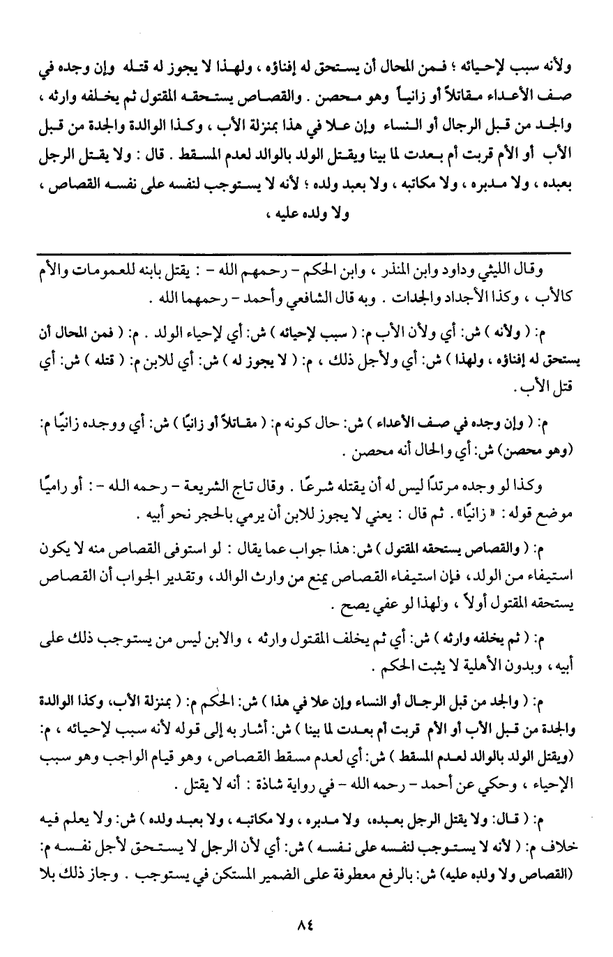 ـــــــــــــــــــــــــــــQوقال الليثي وداود وابن المنذر، وابن الحكم - رَحِمَهُمُ اللَّهُ -: يقتل بابنه للعمومات والأم كالأب، وكذا الأجداد والجدات. وبه قال الشافعي وأحمد - رحمهما الله.