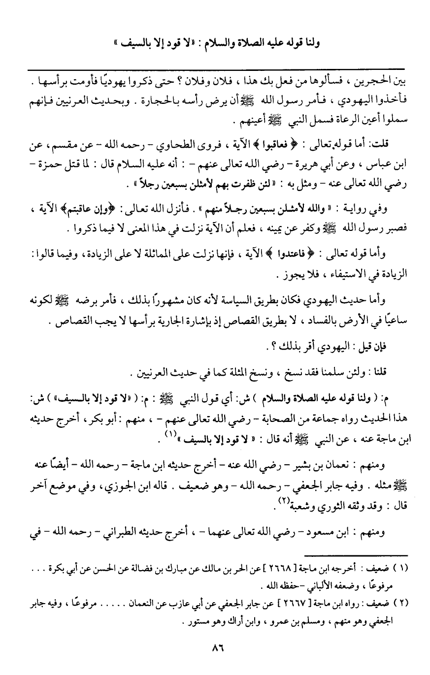 ـــــــــــــــــــــــــــــQبين الحجرين، فسألوها من فعل بك هذا، فلان وفلان؟ حتى ذكروا يهوديا فأومأت برأسها. فأخذوا اليهودي. فأمر رسول الله - صَلَّى اللَّهُ عَلَيْهِ وَسَلَّمَ - أن يرض رأسه بالحجارة» . وبحديث العرنيين فإنهم سملوا أعين الرعاة فسمل النبي - صَلَّى اللَّهُ عَلَيْهِ وَسَلَّمَ - أعينهم.