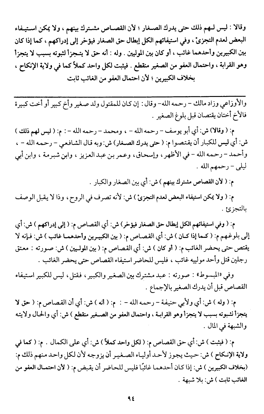 ـــــــــــــــــــــــــــــQوالأوزاعي وزاد مالك - رَحِمَهُ اللَّهُ - وقال: إن كان للمقتول ولد صغير وأخ كبير أو أخت كبيرة فالأخ أختان يقتصان قبل بلوغ الصغير.
