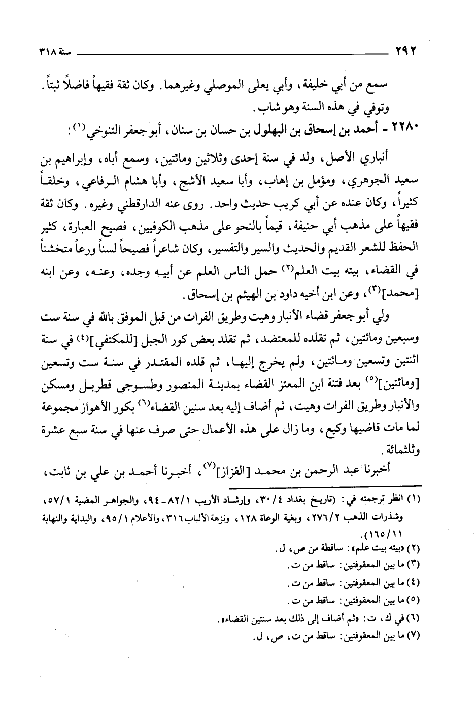 2280- أَحْمَد بْن إسحاق بن البهلول بن حسان بن سنان، أَبُو جعفر التنوخي [1] :