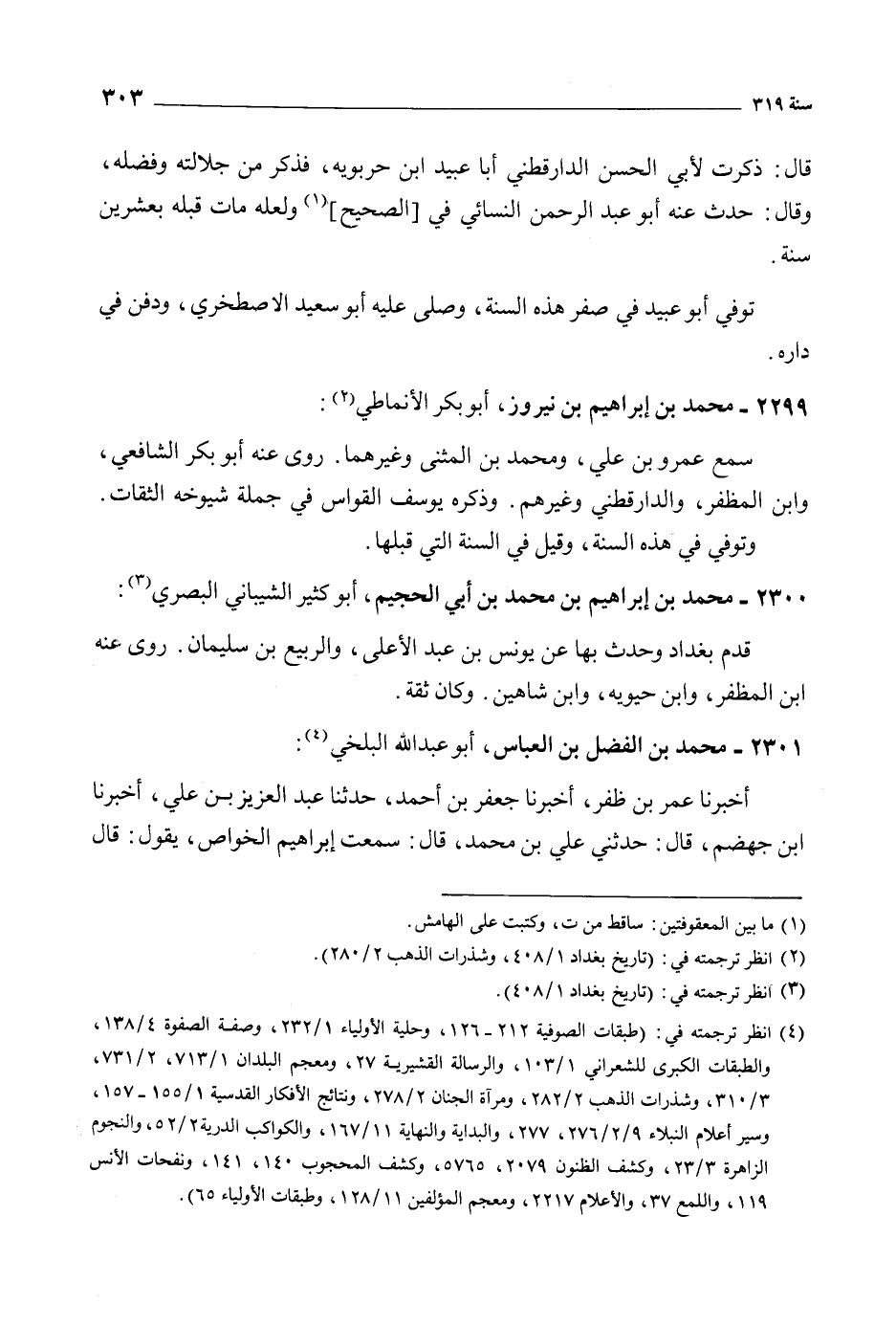 [2] انظر ترجمته في: (تاريخ بغداد 1/ 408، وشذرات الذهب 2/ 280) .