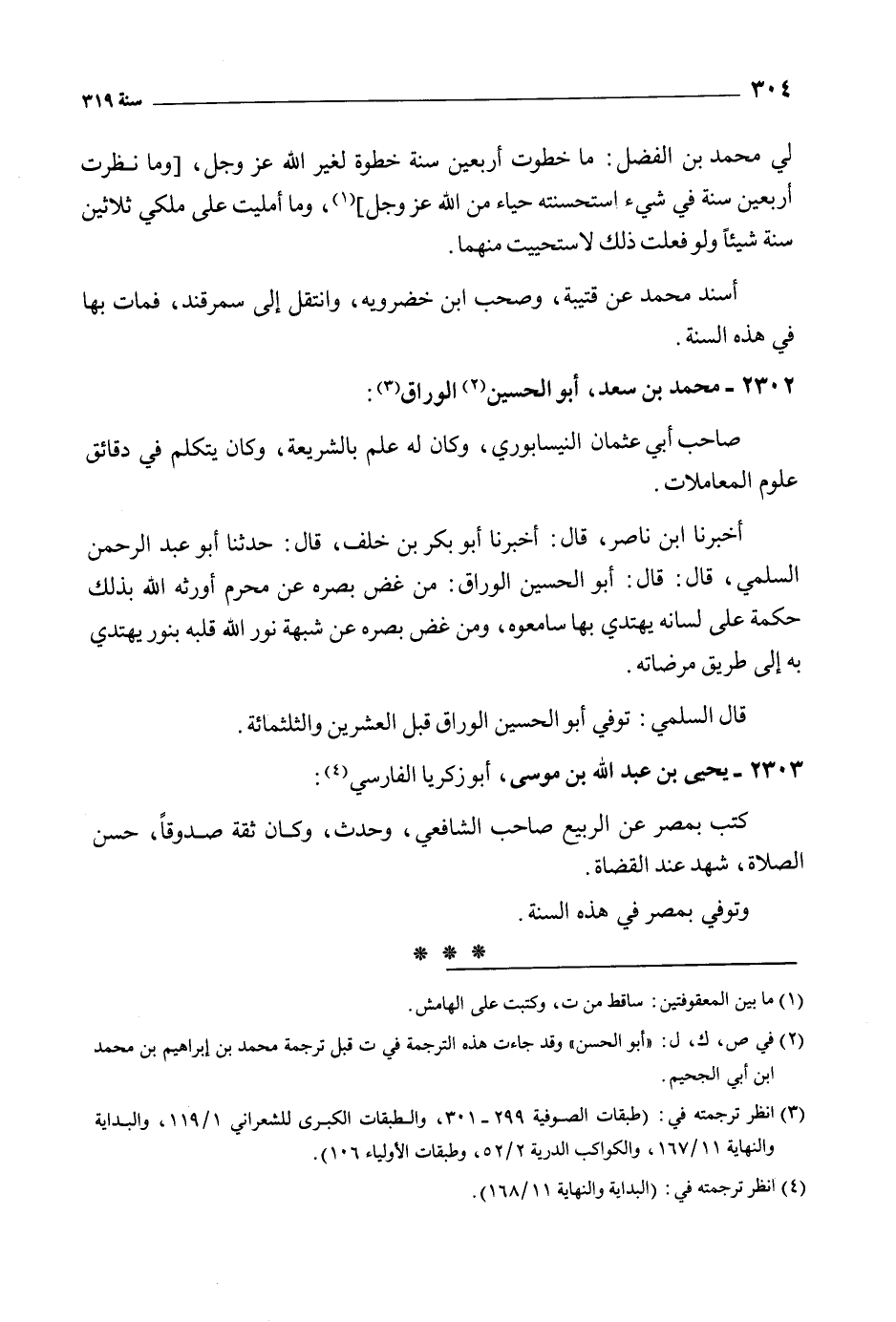 [3] انظر ترجمته في: (طبقات الصوفية 299- 301، والطبقات الكبرى للشعراني 1/ 119، والبداية والنهاية 11/ 167، والكواكب الدرية 2/ 52، وطبقات الأولياء 106) .