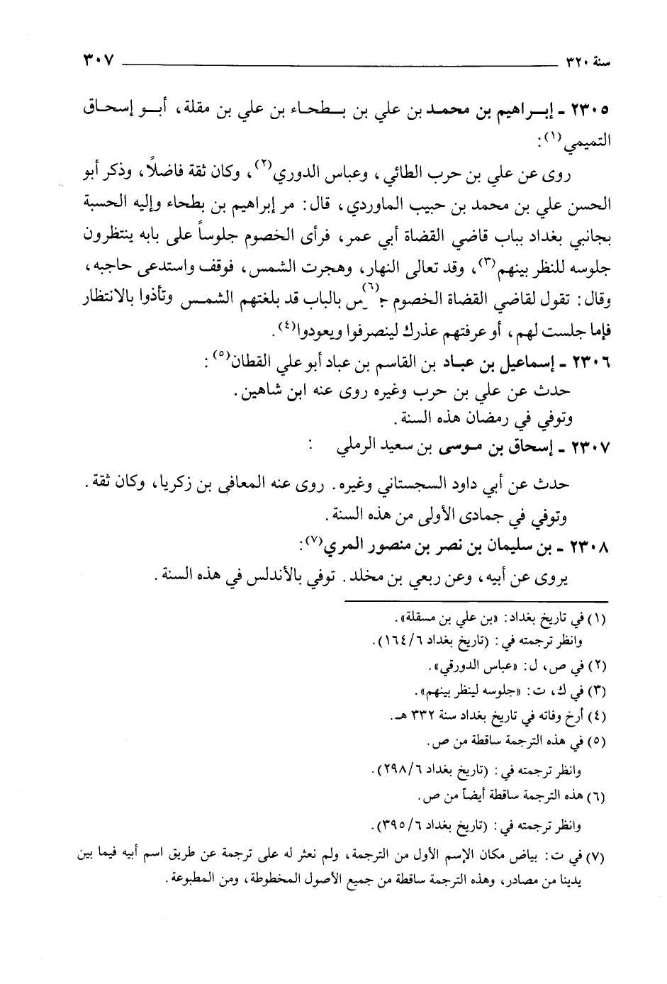 وانظر ترجمته في، (تاريخ بغداد 6/ 395) .
