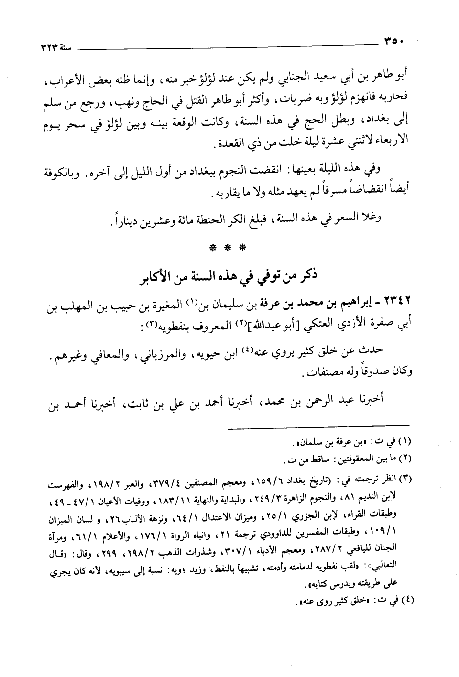2342- إبراهيم بْن مُحَمَّد بْن عرفة بْن سليمان بْن [1] المغيرة بْنِ حَبِيبِ بْنِ الْمُهَلَّبِ بْنِ أَبِي صُفْرَةَ الأزدي العتكي [أَبُو عبد الله] [2] المعروف بنفطويه [3] :