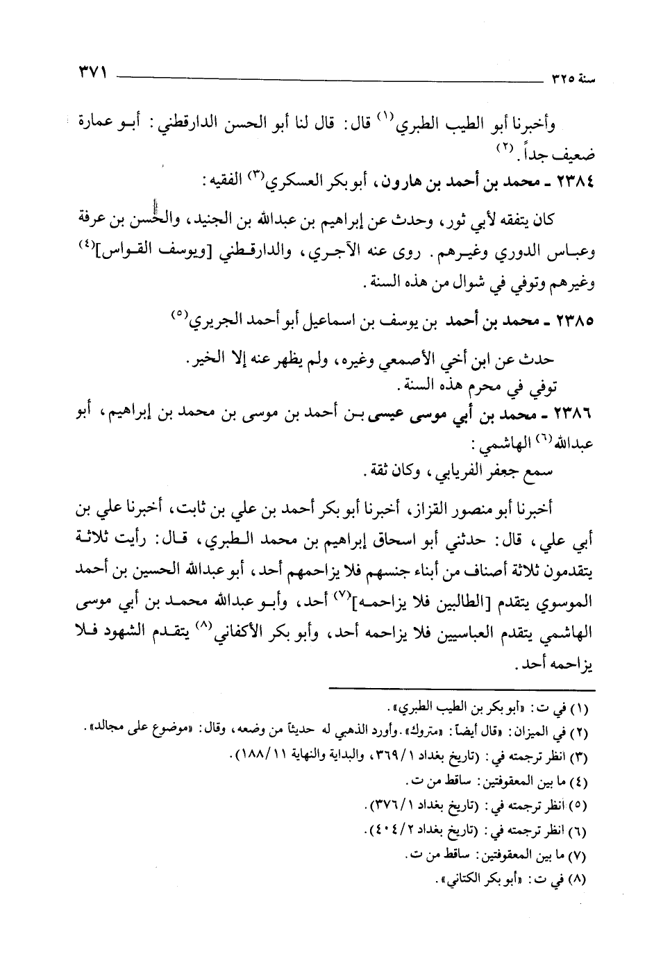 [3] انظر ترجمته في: (تاريخ بغداد 1/ 369، والبداية والنهاية 11/ 188) .