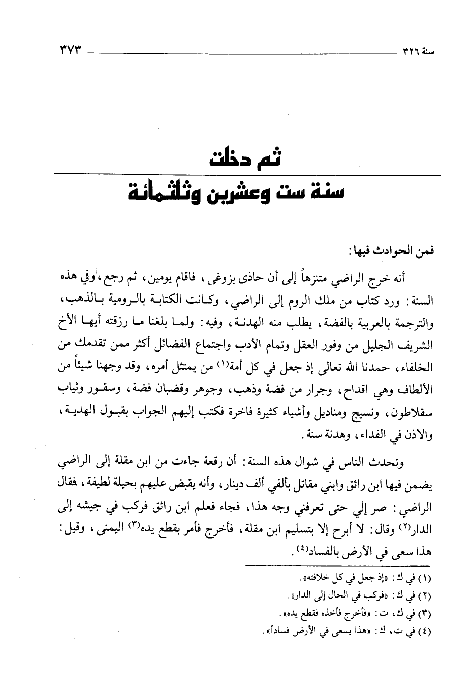 ثم دخلت سنة ست وعشرين وثلاثمائة