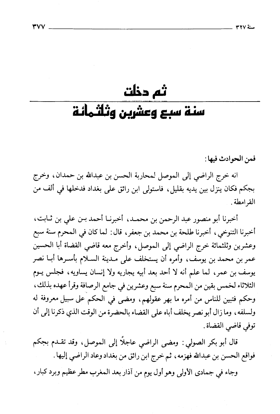 ثم دخلت سنة سبع وعشرين وثلاثمائة