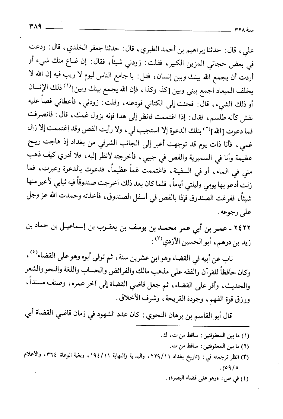 2422- عمر بْن أبي عمر مُحَمَّد بن يوسف بن يعقوب بن إسماعيل بن حماد بْن زيد بْن درهم، أَبُو الحسين الأزدى [3] :