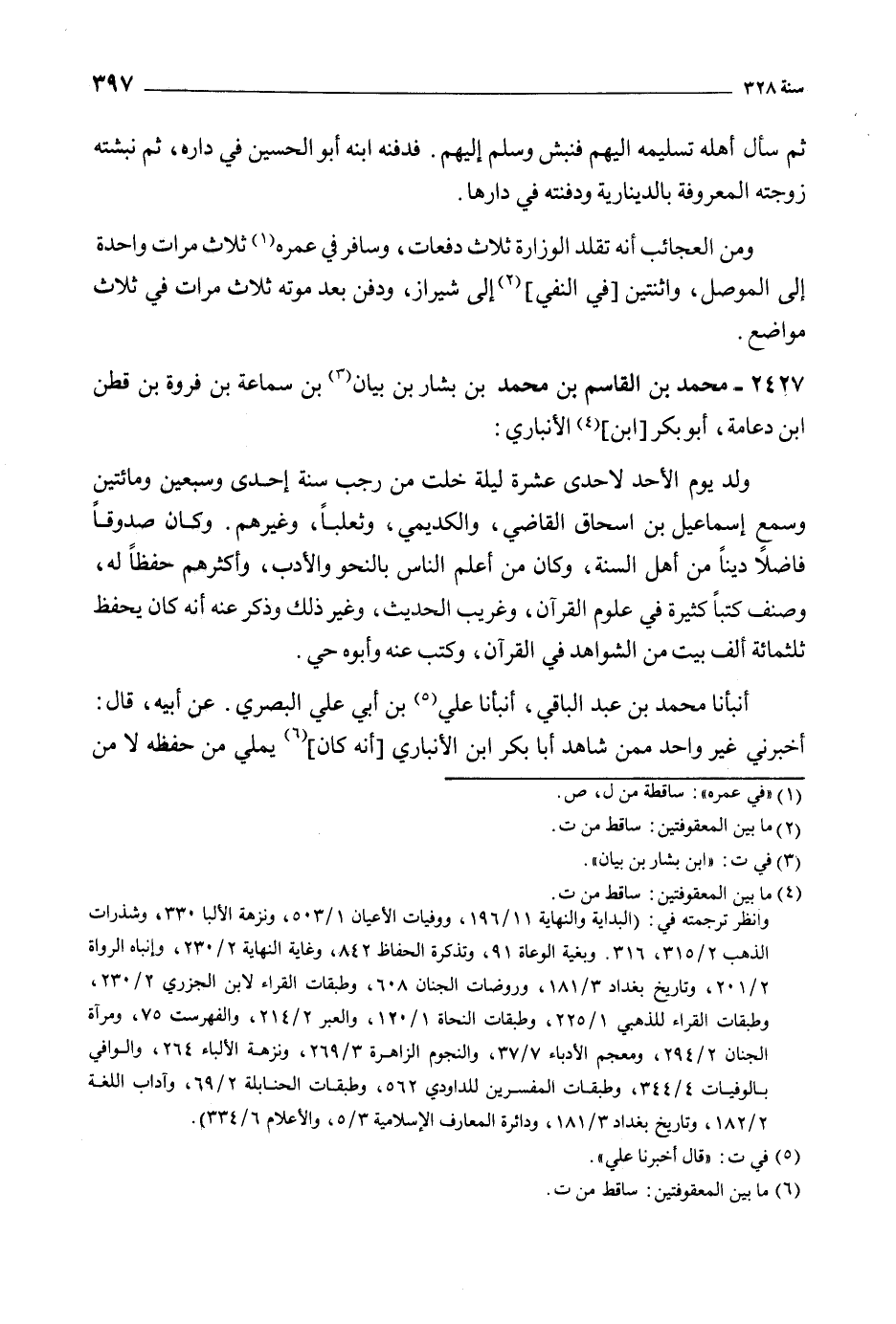 2427- مُحَمَّد بْن الْقَاسِم بْن مُحَمَّد بْن بشار بْن بيان [3] بْن سماعة بْن فروة بن قطن ابن دعامة، أبو بكر [ابن] [4] الأنباري: