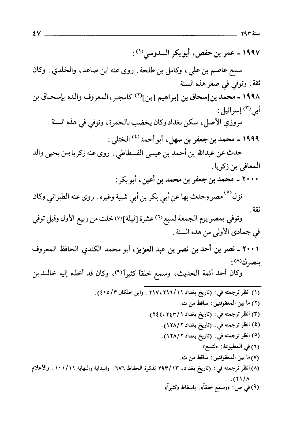 [8] انظر ترجمته في: (تاريخ بغداد، 13/ 293 تذكرة الحفاظ 676. والبداية والنهاية 11/ 101. والأعلام 8/ 21) .