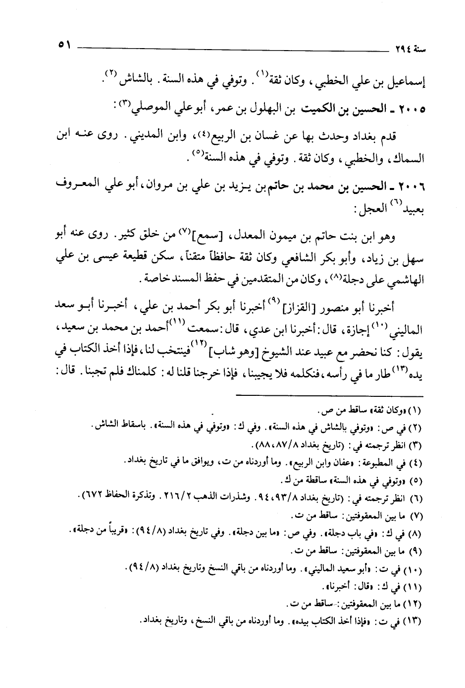 [6] انظر ترجمته في: (تاريخ بغداد 8/ 93، 94. وشذرات الذهب 2/ 216. وتذكرة الحفاظ 672) .