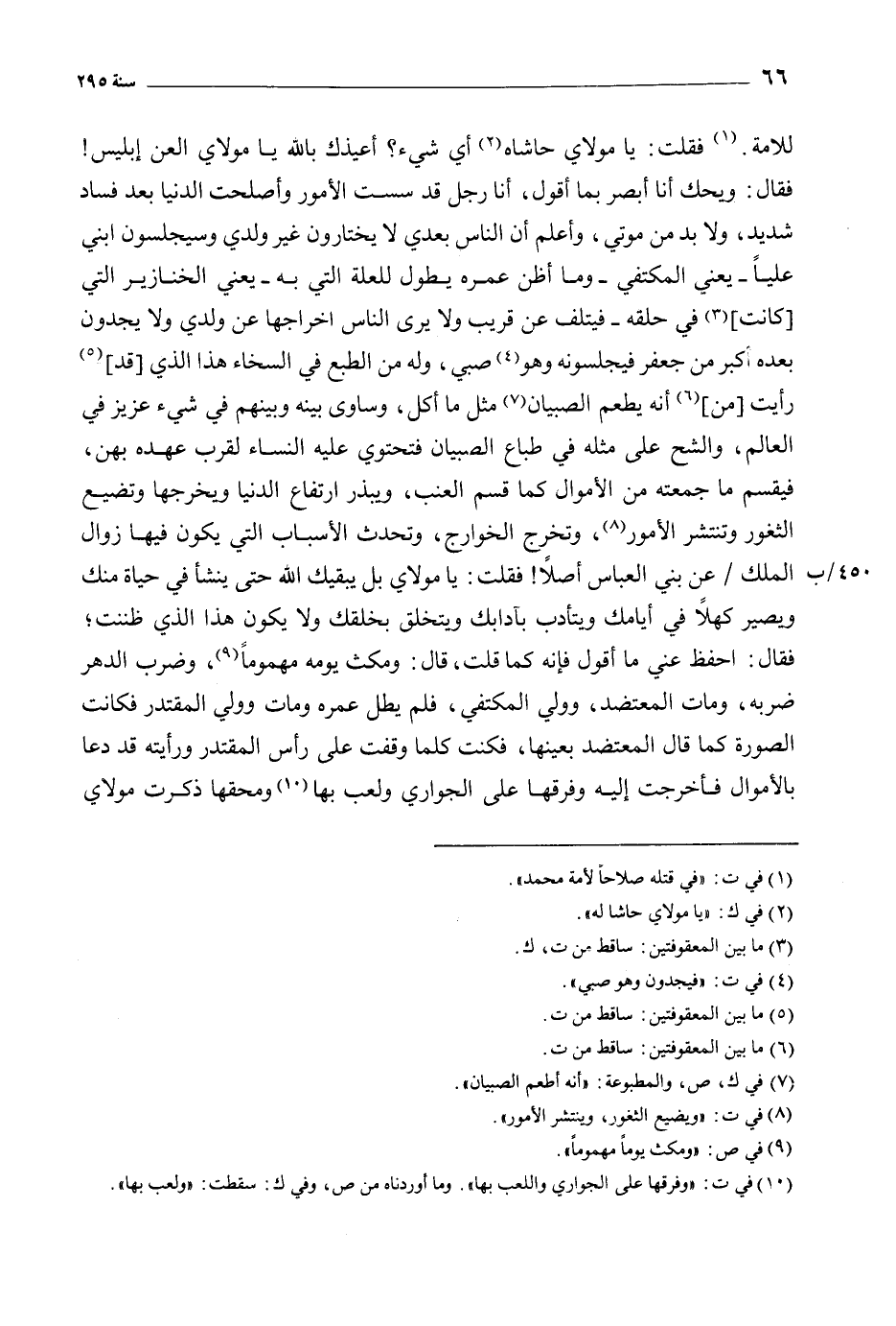 [10] في ت: «وفرقها على الجواري واللعب بها» . وما أوردناه من ص، وفي ك: سقطت: «ولعب بها» .
