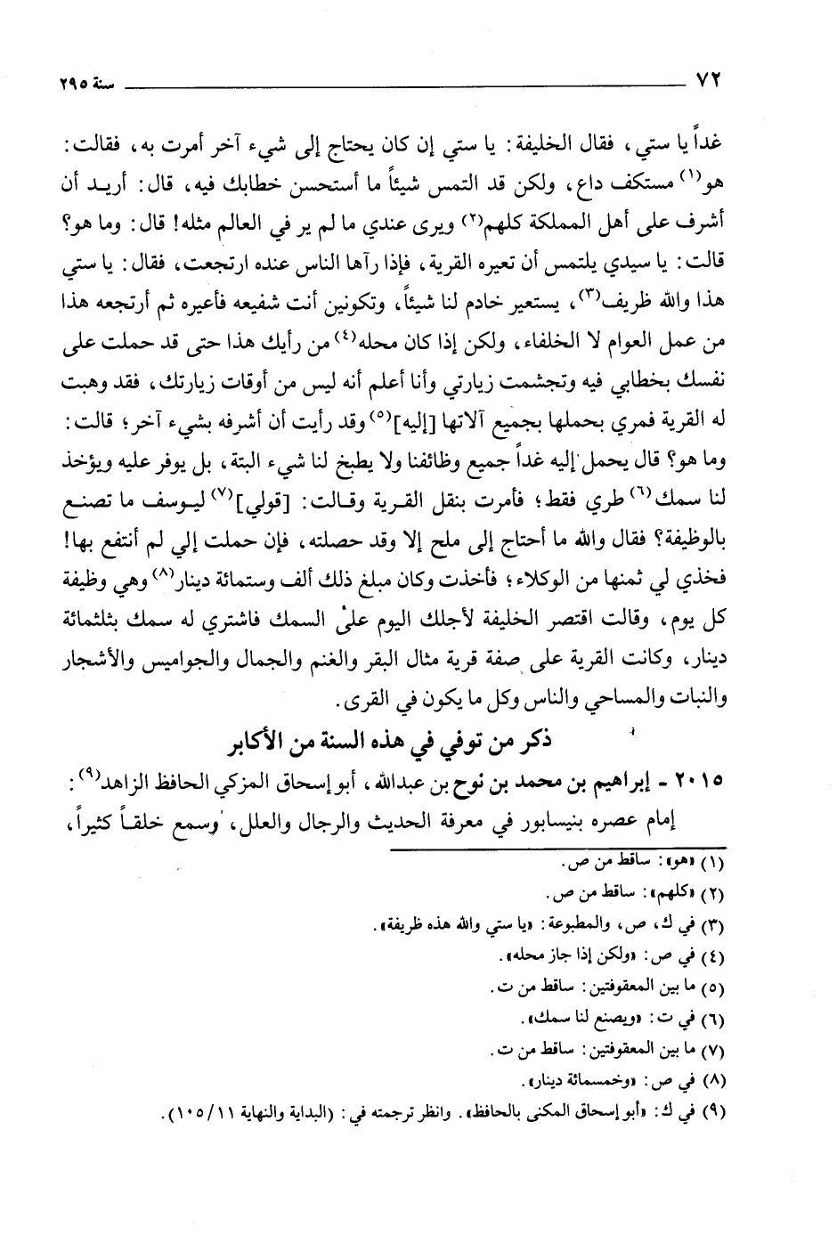 قالت: يا سيدي يلتمس أن تعيره القرية، فإذا رآها الناس عنده ارتجعت، فقال: يا ستي هذا والله ظريف [3] ، يستعير خادم لنا شيئا، وتكونين أنت شفيعة فأعيره ثم ارتجعه هذا من عمل العوام لا الخلفاء، ولكن إذا كَانَ محله [4] من رأيك هذا حتى قد حملت على نفسك بخطابي فيه وتجشمت زيارتي وأنا أعلم أنه ليس من أوقات زيارتك، فقد وهبت له القرية فمري بحملها بجميع آلاتها [إليه] [5] وقد رأيت أن أشرفه بشيء آخر، قالت: