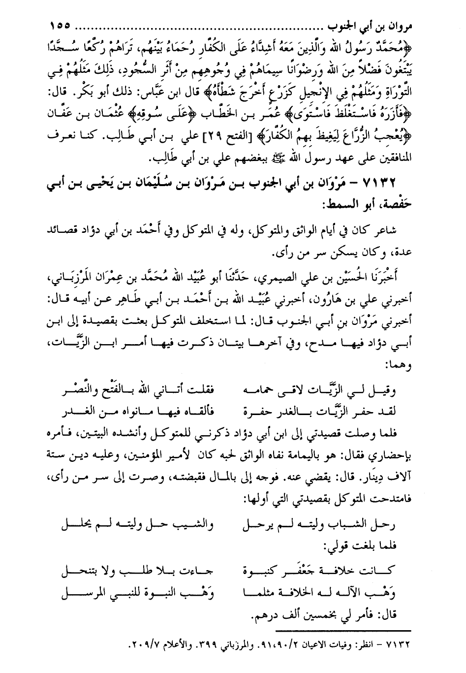 [1] 7132- انظر: وفيات الأعيان 2/90، 91. والمرزباني 399. والأعلام 7/209.