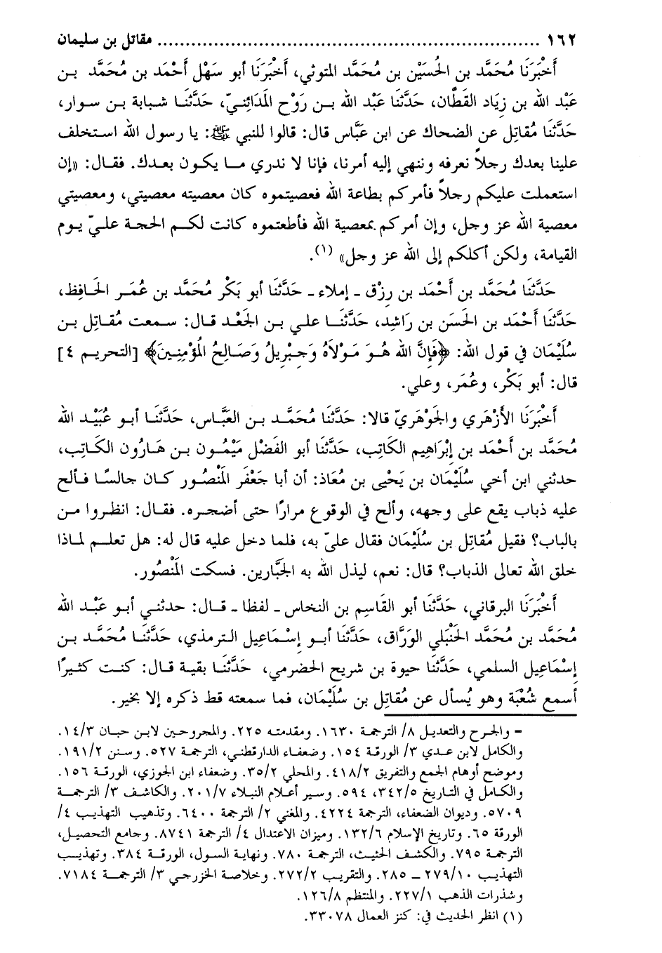 أَخْبَرَنَا البرقاني، حَدَّثَنَا أَبُو القاسم بن النخاس- لفظا- قَالَ: حَدَّثَنِي أَبُو عَبْدِ اللَّهِ مُحَمَّدُ بْنُ مُحَمَّد الحنبلي الورّاق، حدّثنا أبو إسماعيل الترمذي، حدّثنا محمّد بن إسماعيل السلمي، حدّثنا حيوة بن شريح الحضرمي، حَدَّثَنَا بقية قَالَ: كنت كثيرا أسمع شعبة وهو يسأل عن مقاتل بن سليمان، فما سمعته قط ذكره إلا بخير.