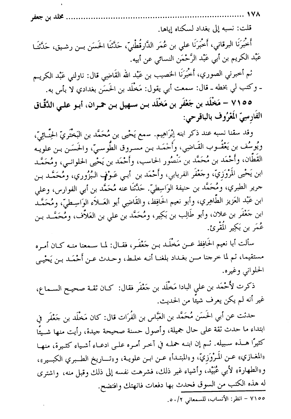 7155- مخلد بن جعفر بن مخلد بن سهيل بن حمران، أَبُو علي الدقاق الفارسي المعروف بالباقرحي [1] :