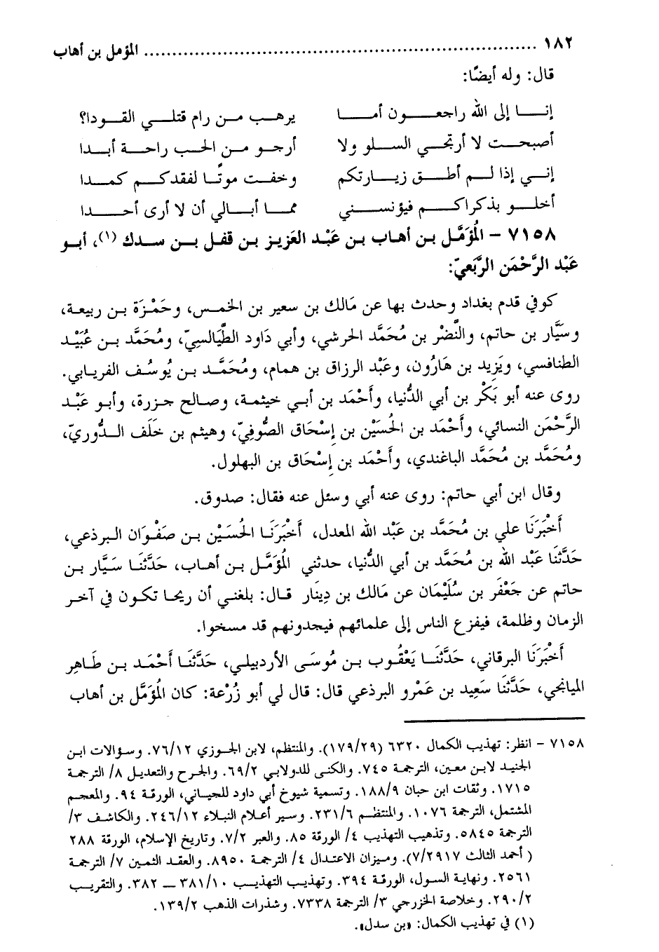 7158-[1] المؤمل بن إهاب بن عبد العزيز بن قفل بن سدك [2] ، أَبُو عَبْد الرَّحْمَن الربعي: