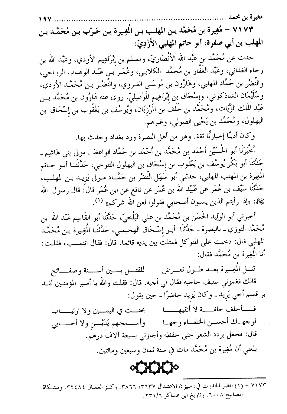 7173- مغيرة بن مُحَمَّد بن المهلب بن المغيرة بن حرب بن محمد بن المهلب بن أبي صفرة، أَبُو حاتم المهلبي الأزدي: