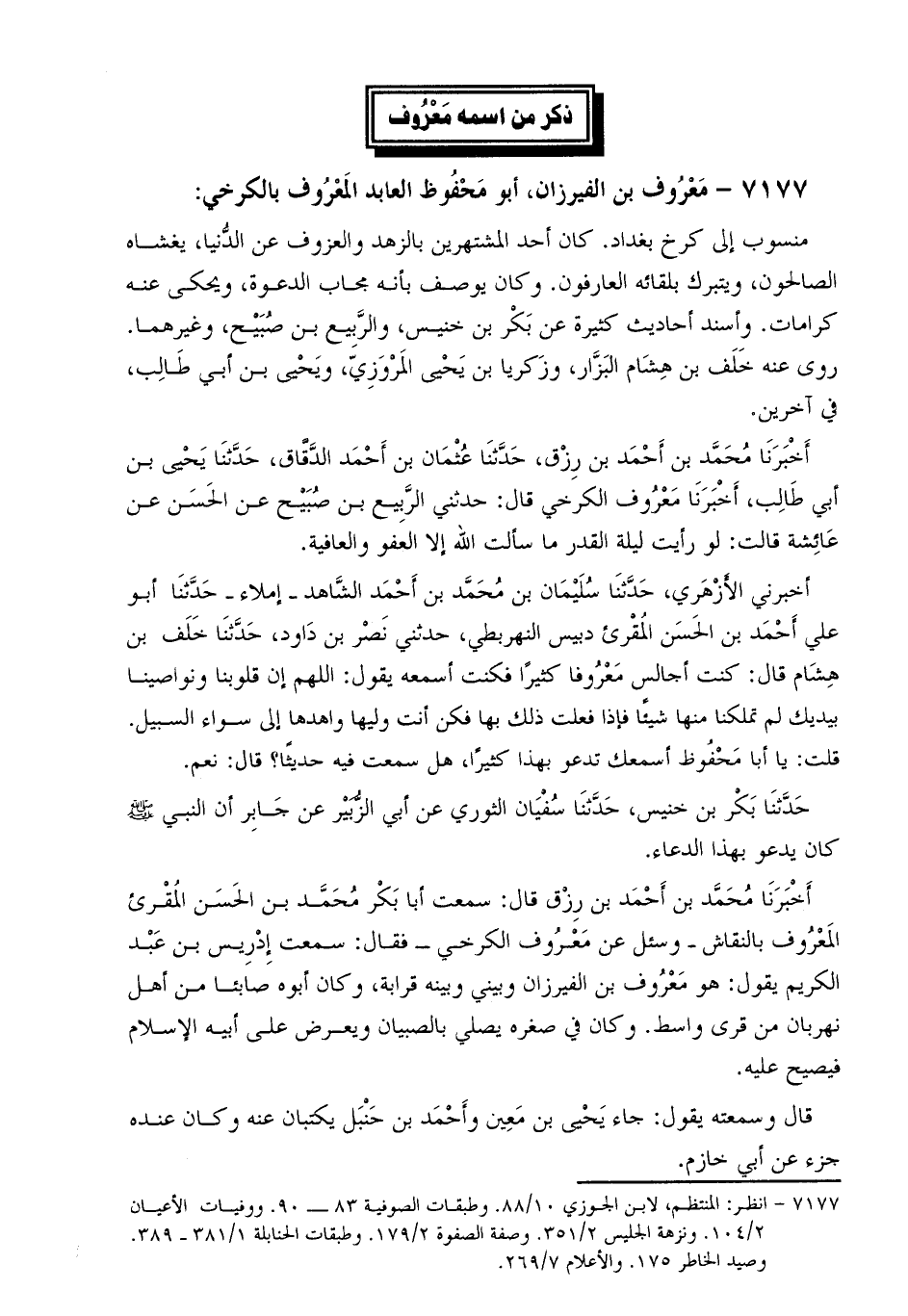 7177- معروف بن الفيرزان، أَبُو محفوظ العابد المعروف بالكرخي [1] :