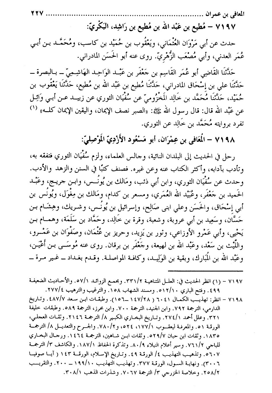 7198- المعافى بن عمران، أَبُو مسعود الأزدي الموصلي [2] :