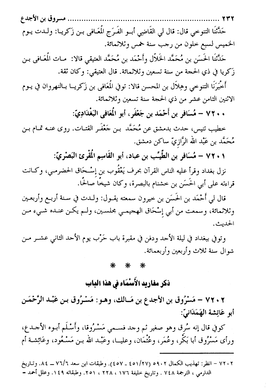 7202- مسروق بن الأجدع بن مالك، وهو: مسروق بن عَبْد الرَّحْمَن أَبُو عائشة الهمداني [1] :