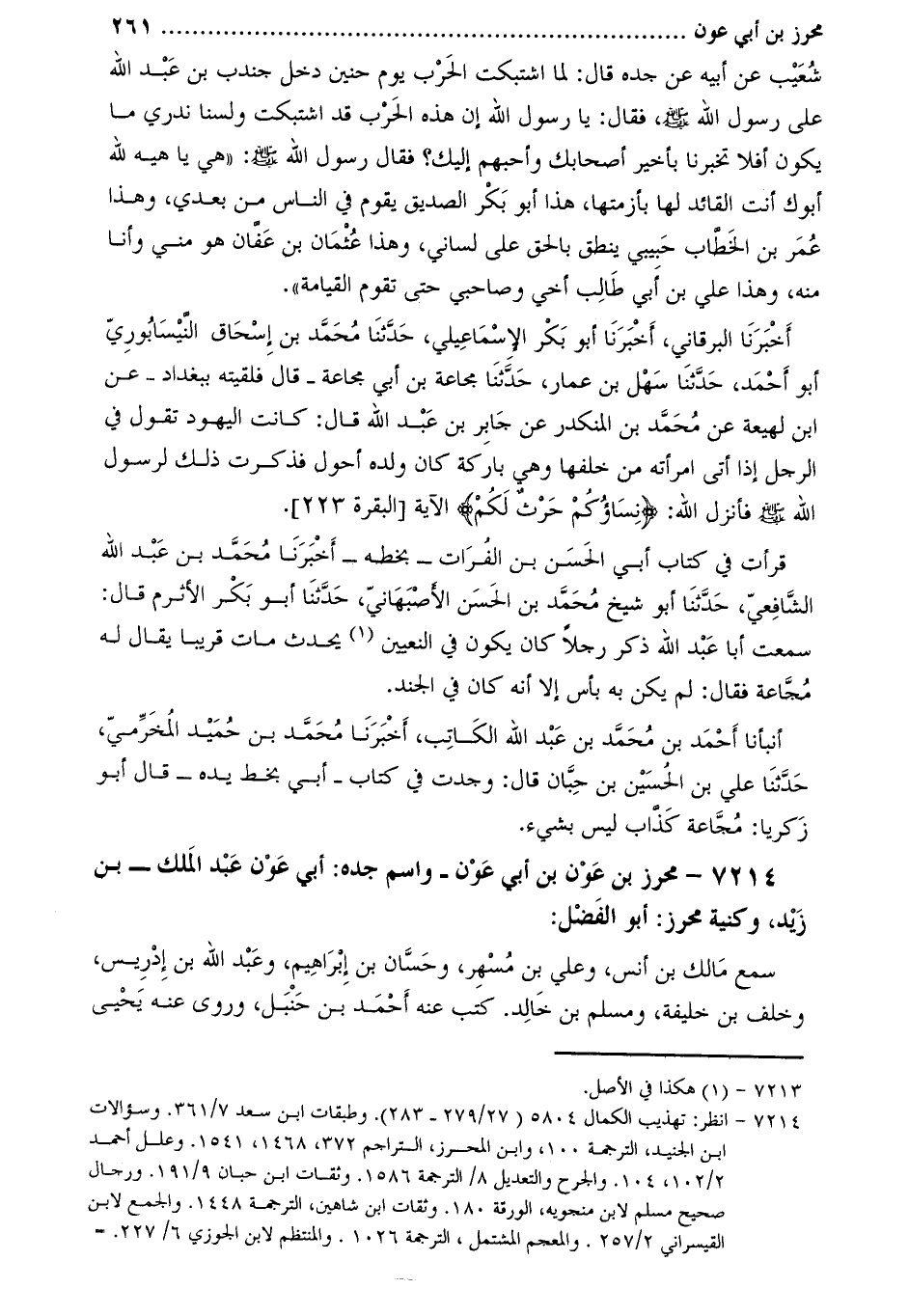 7214- محرز بن عون بن أَبِي عون- واسم جَدّه: أَبِي عون عَبْد الملك- بن زيد، وكنية محرز: أَبُو الفضل [2] :