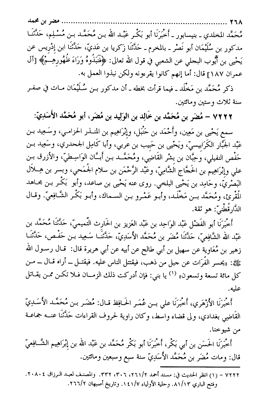 7222- مضر بن مُحَمَّد بن خَالِد بن الوليد بن مضر، أَبُو مُحَمَّد الأَسَدِيّ: