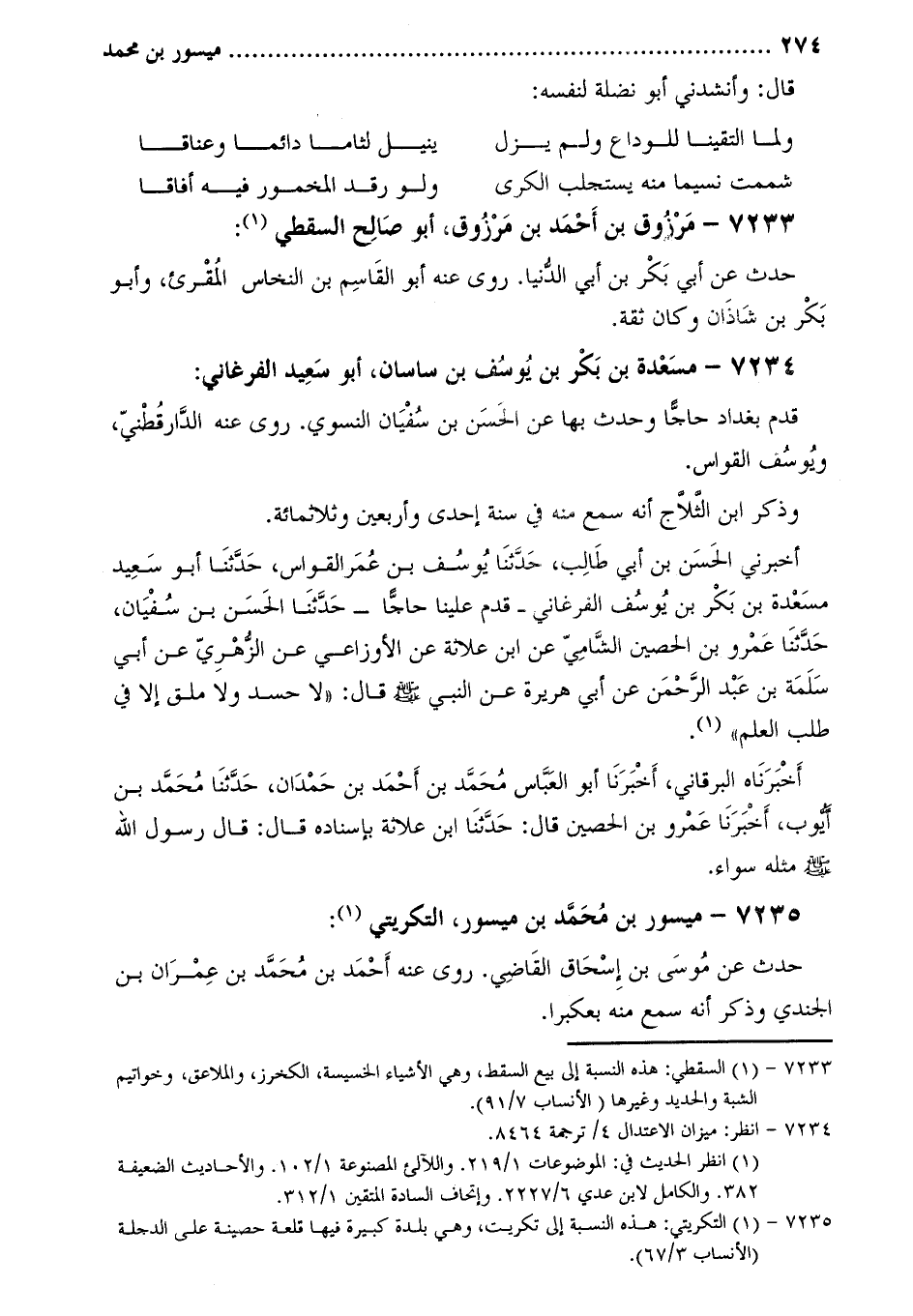 7234- مسعدة بن بكر بن يوسف بن ساسان، أَبُو سعيد الفرغاني [2] :