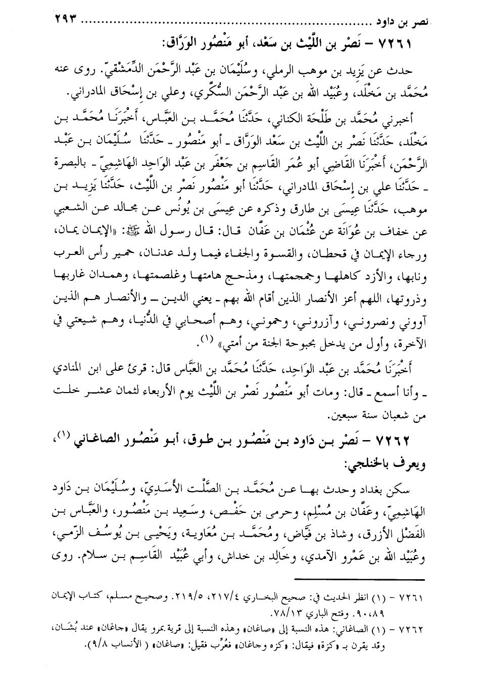7262- نصر بن داود بن منصور بن طوق، أَبُو منصور الصاغاني [2] ، ويعرف بالخلنجي: