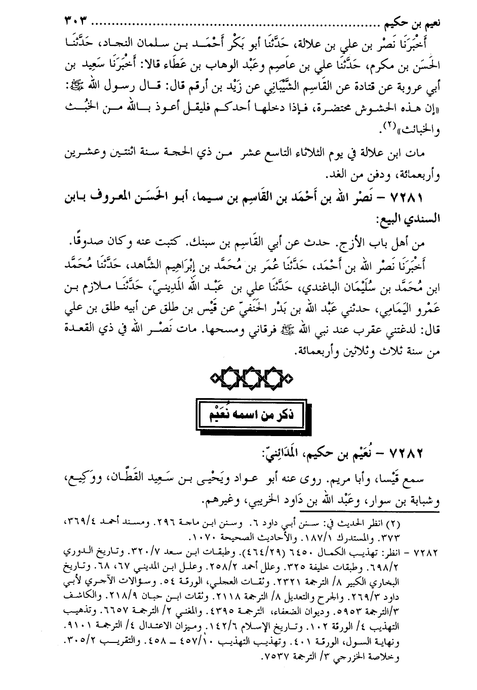7281- نصر الله بن أَحْمَد بن القاسم بن سيما، أَبُو الحسن المعروف بابن السندي البيع: