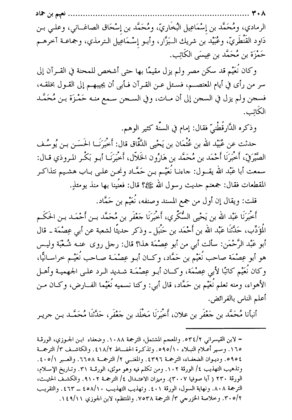 سمعت أبا عَبْد الله يقول: جاءنا نعيم بن حماد ونحن على باب هشيم نتذاكر المقطعات فقال: جمعتم حديث رَسُولَ اللَّهِ صَلَّى اللَّهُ عَلَيْهِ وَسَلَّمَ؟ قَالَ: فعنينا بها منذ يومئذ.