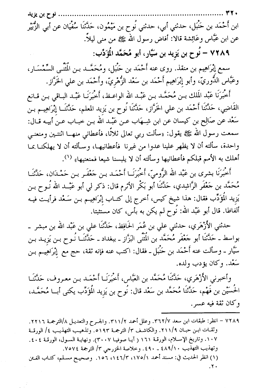 [1] 7289- انظر: طبقات ابن سعد 7/362. وعلل أحمد 2/311. والجرح والتعديل 8/الترجمة 2216.