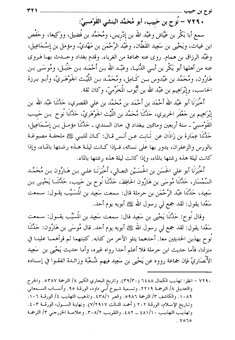 [1] 7290- انظر: تهذيب الكمال 6488 (30/39) . وتاريخ البخاري الكبير 8/الترجمة 5387. والجرح والتعديل 8/الترجمة 2219. وتسمية شيوخ أبي داود، الورقة 95. وأنساب السمعاني 1089. والكاشف 3/الترجمة 5986. والعبر 1/438. وتذهيب التهذيب 4/الورقة 106.
