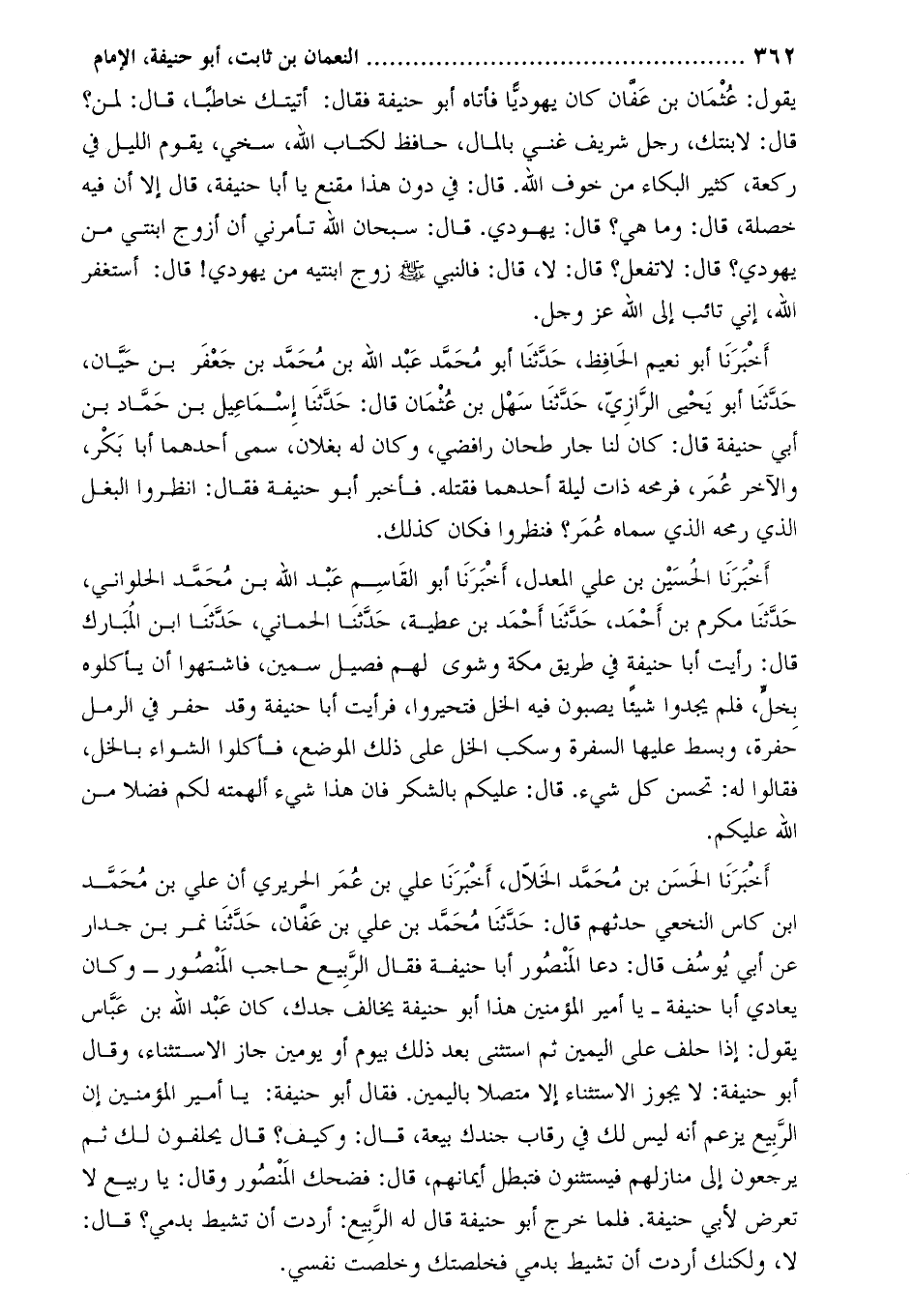 يقول: عثمان بن عفان كان يهوديًا فأتاه أَبُو حنيفة فقال: أتيتك خاطبا، قَالَ: لمن؟