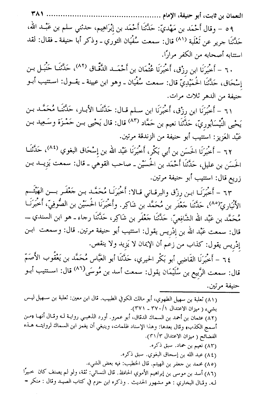 59- وقال أحمد بن مهديّ: حدّثنا أحمد بن إبراهيم، حدثني سلم بن عبد الله، حَدَّثَنَا جرير عن ثعلبة [1] قال: سمعت سفيان الثوري- وذكر أبا حنيفة- فقال: لقد استتابه أصحابه من الكفر مرارا.