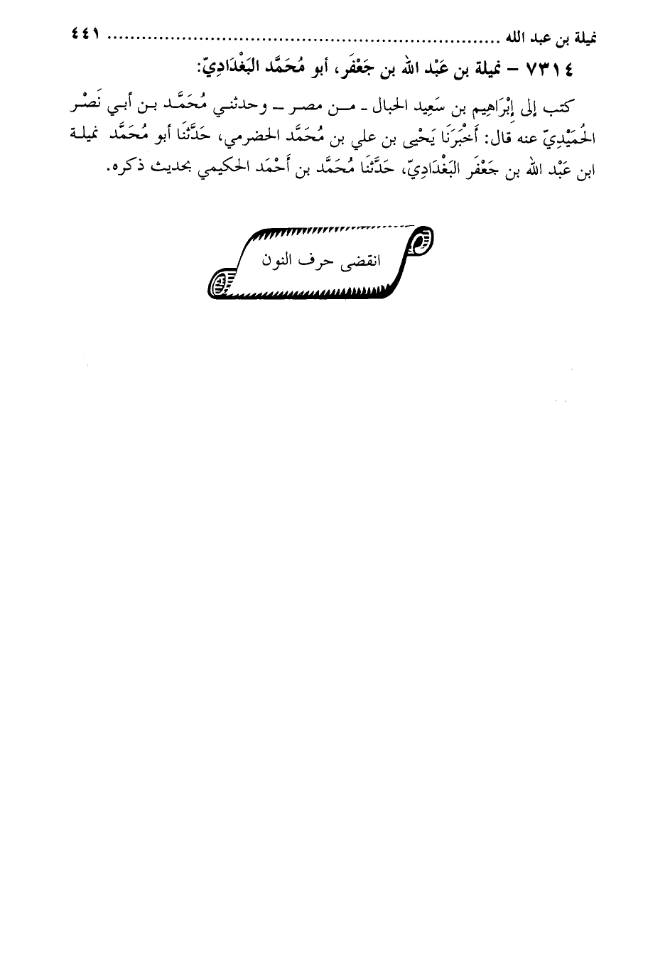 7314- نميلة بن عبد الله بن جعفر، أَبُو مُحَمَّد البغدادي: