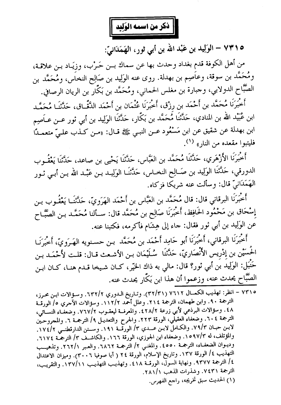 7315- الوليد بن عبد الله بن أبي ثور، الهمداني [1] :