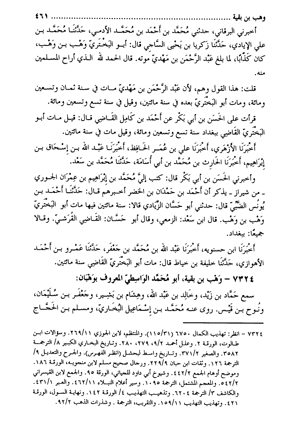 7324- وهب بن بقية، أَبُو مُحَمَّد الواسطي المعروف بوهبان [1] :