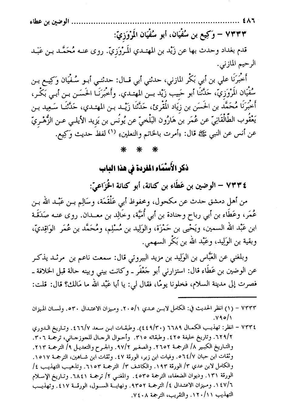 [2] 7334- انظر: تهذيب الكمال 6689 (30/449) . وطبقات ابن سعد 7/466. وتاريخ الدوري 2/629. وتاريخ خليفة 425. وطبقاته 315. وأحوال الرجال للجوزجاني، ترجمة 306.