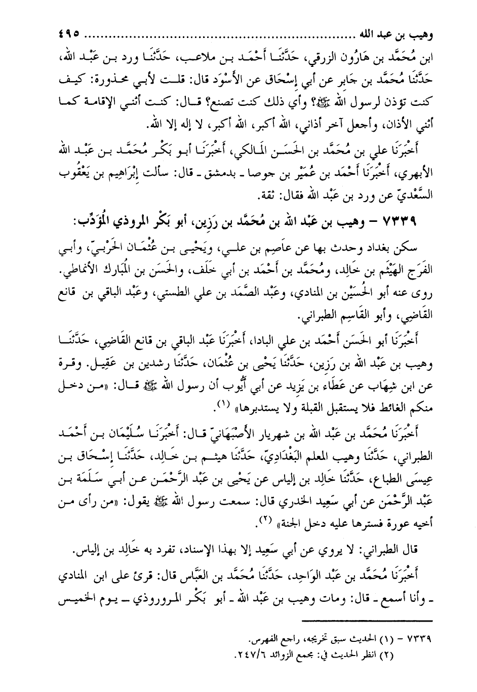 7339- وهيب بن عبد الله بن مُحَمَّد بن رزين، أبو بكر المروذي المؤدب: