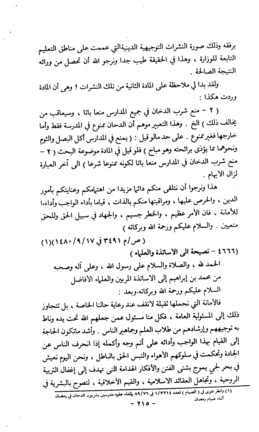 من محمد بن إبراهيم إلى الأساتذة المربين والعلماء الأفاضل