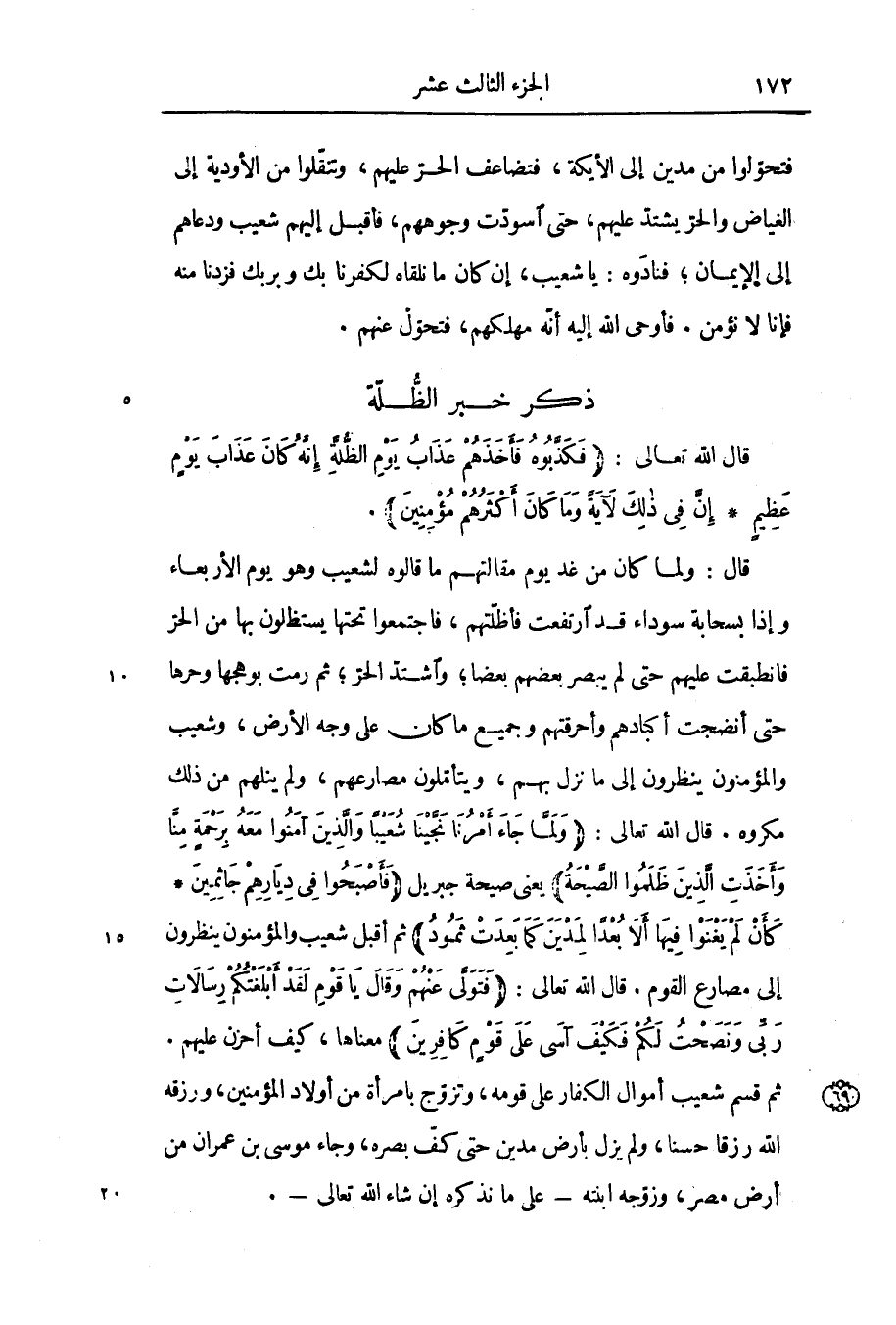 قال الله تعالى: فَكَذَّبُوهُ فَأَخَذَهُمْ عَذابُ يَوْمِ الظُّلَّةِ إِنَّهُ كانَ عَذابَ يَوْمٍ عَظِيمٍ* إِنَّ فِي ذلِكَ لَآيَةً وَما كانَ أَكْثَرُهُمْ مُؤْمِنِينَ.