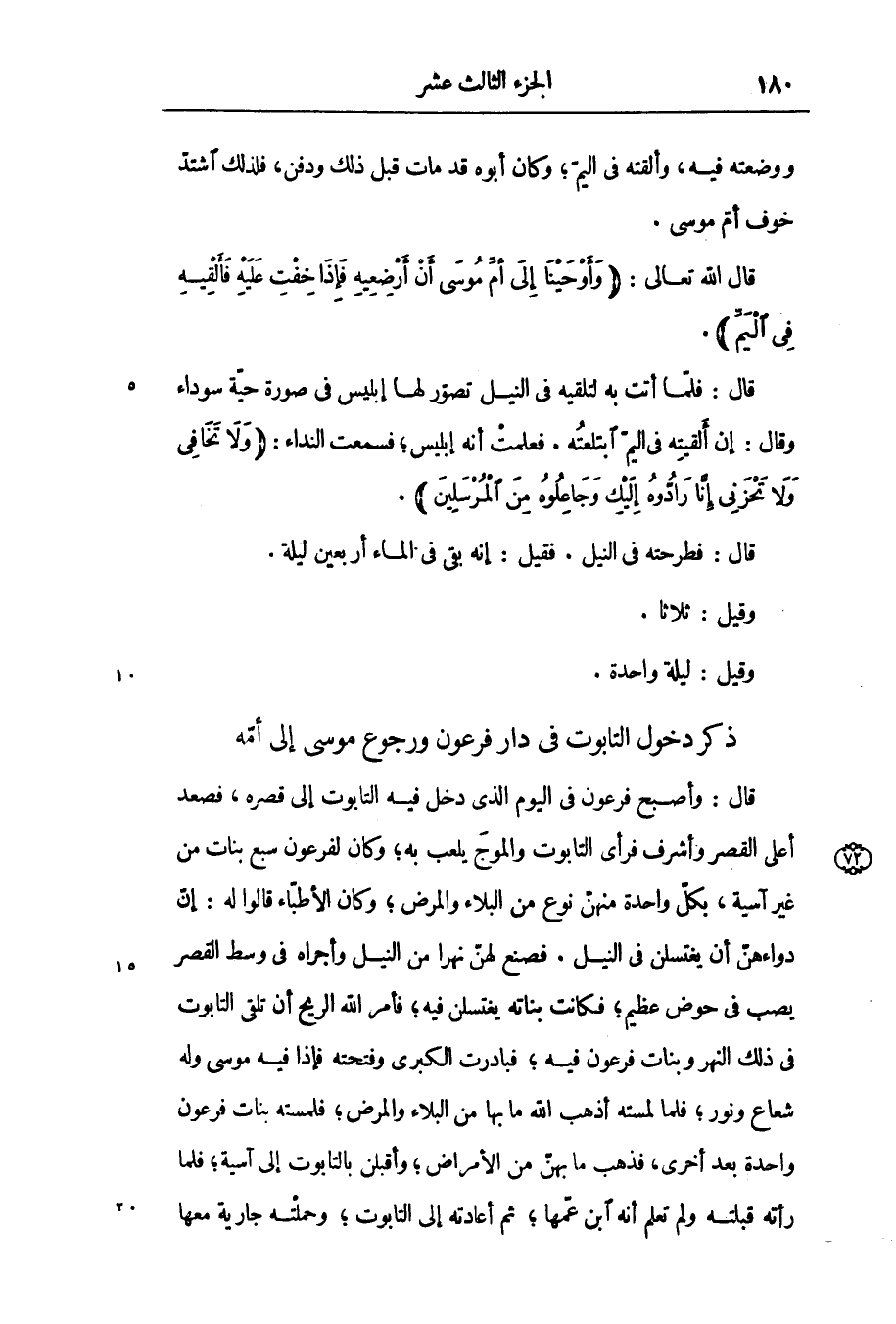 قال: فطرحته فى النيل. فقيل: إنه بقى فى الماء أربعين ليلة.