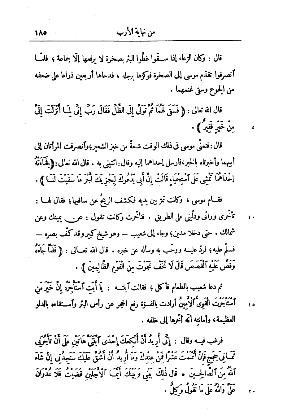 فرغب فيه وقال: إِنِّي أُرِيدُ أَنْ أُنْكِحَكَ إِحْدَى ابْنَتَيَّ هاتَيْنِ عَلى أَنْ تَأْجُرَنِي ثَمانِيَ حِجَجٍ فَإِنْ أَتْمَمْتَ عَشْراً فَمِنْ عِنْدِكَ وَما أُرِيدُ أَنْ أَشُقَّ عَلَيْكَ سَتَجِدُنِي إِنْ شاءَ اللَّهُ مِنَ الصَّالِحِينَ* قالَ ذلِكَ بَيْنِي وَبَيْنَكَ أَيَّمَا الْأَجَلَيْنِ قَضَيْتُ فَلا عُدْوانَ عَلَيَّ وَاللَّهُ عَلى ما نَقُولُ وَكِيلٌ.